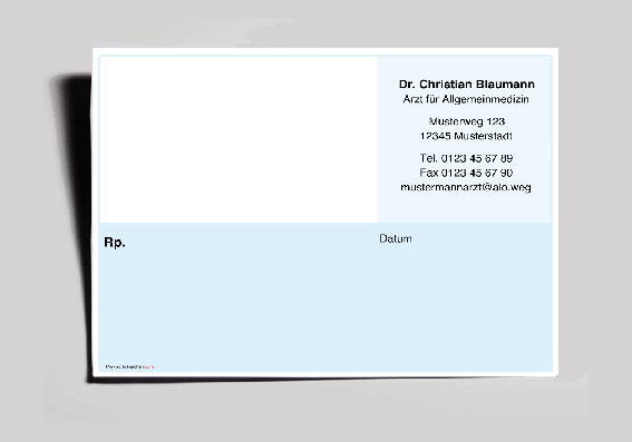 Startseite Rezeptblöcke Grüne Rezepte Kassenrezepte PKV-Rezepte Terminzettel Praxisformulare Praxisbedarf Stempel Visitenkarten PayPal -Shop mehr...